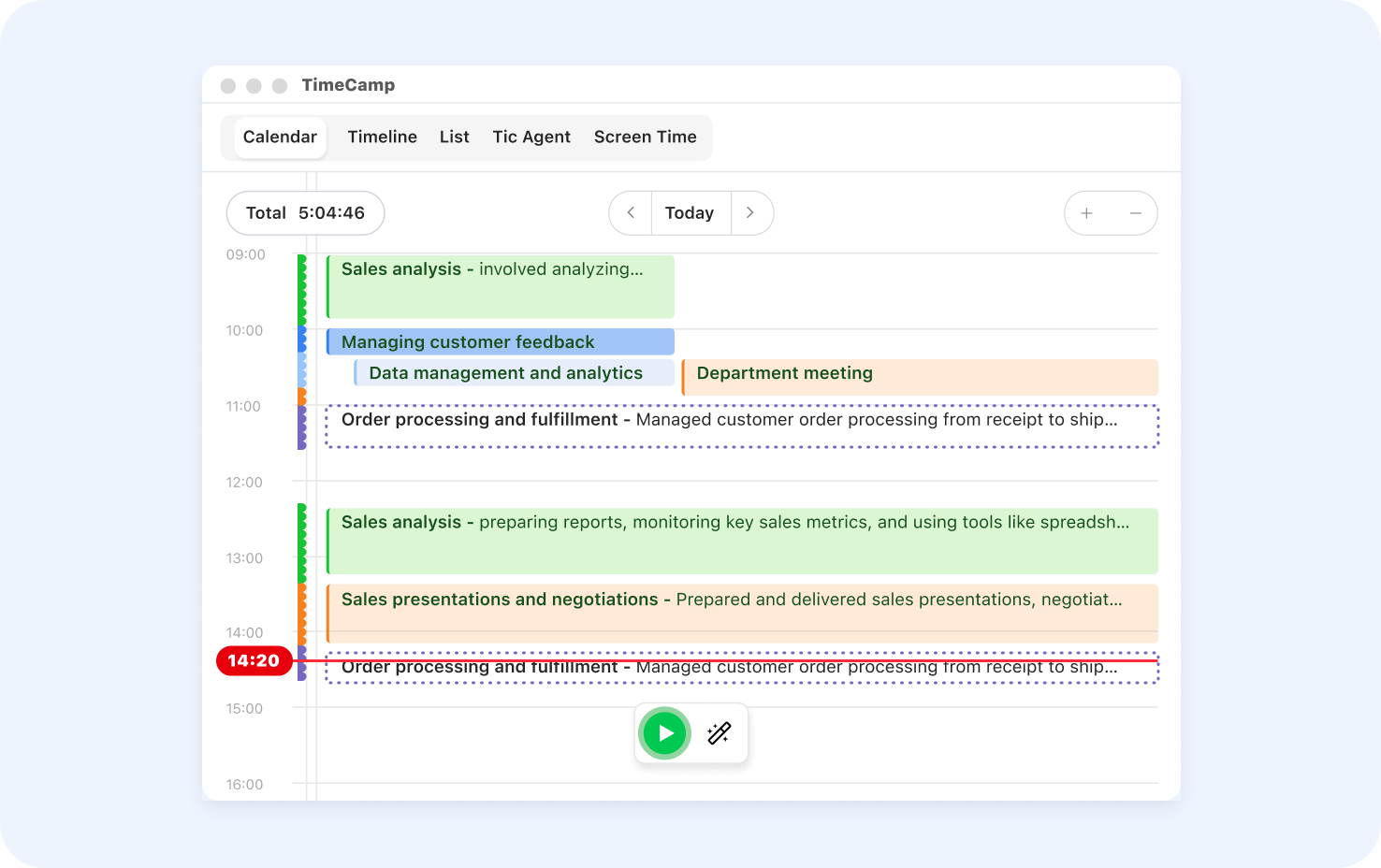 Od 2024 roku rozwijamy dla TimeCamp aplikację desktopową AI, która działa w tle, zbiera sygnały z aktywności użytkownika i przygotowuje propozycje wpisów czasu do właściwych projektów. Zapis następuje dopiero po review użytkownika.
